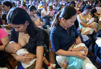 (菲律賓)菲律賓數以萬計母親10月24日上午10時在全國1000多個哺乳站參與“大家一起來哺乳”活動,倡導“母乳最好”的觀念,並嘗試打破世界紀錄。