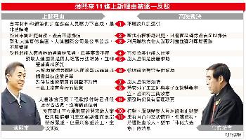 (中國)重慶市原書記薄熙來案10月25日在山東省高級人民法院終審宣判,當局駁回上訴,維持原判。25日公佈的二審裁定書中出現了薄熙來個人提出的11個上訴理由(見表)。他指供詞是在壓力下作出,要求排除這一非法證據,並指妻子谷開來沒有出庭質證等,但都被官方逐一駁斥。文件中谷開來的名字後標有“另案處理”字樣,有律師相信是指其已因受賄被另外立案調查。