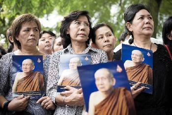 泰國是佛教國家,僧王是人民宗教精神領袖,1913年10月3日出生的蘇瓦塔那摩訶(Somdet Phra Nyanasamvara Suvaddhana Mahathera),1933年出家,1989年受泰王封為僧王,是在位最長的僧王。他於2002年入院,本月剛滿100歲,週四因血液受感染病逝。曼谷街頭許多人穿黑衣悼念僧王,懷念他照顧貧童、成立醫院照顧民眾、奉獻佛教等善行。(香港明報)