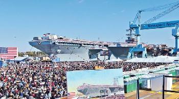 (美國)號稱“世界最強”的美國海軍新一代福特級核動力航母首艦“福特”號,上週六(9日)在弗吉尼亞州舉行命名下水儀式。這艘領先現存別國航母兩個世代的超級戰爭武器,配備最新電磁彈射和攔阻系統,每日艦載機起降量較尼米茲級多25%,大大提昇作戰效率,勢將在未來50年成為全球海上軍事主宰。中國專家估計其技術領先中國航母“遼寧”號最少30年。