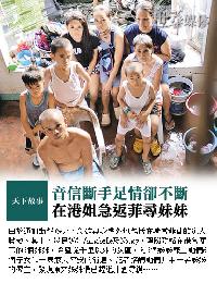 (菲律賓)超強颱風“海燕”在菲律賓造成以萬計人命傷亡,重災區塔克洛班巿(Tacloban)更是樹倒屋毀,死傷枕藉。本報記者昨日進入該巿,目睹大批焦慮待援的災民,由於通訊斷絕多天,急欲與身處外地包括在港當菲傭的家人聯繫。其中,災民姊妹Annabelle及Nancy,亟盼聯絡在港當傭工的3個姊姊,希望從千里以外的災區,向3個姊姊報上她們6個子女和一眾家人平安的消息。記者接觸她們其中一名姊姊的僱主,發現原來姊姊們已趕返菲國尋親。