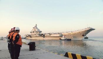 (中國)中國第一艘航空母艦“遼寧”號昨晨在兩艘導彈驅逐艦和兩艘護衛艦護航下,首次以航母戰鬥群的編隊姿態駛離山東青島,遠赴南海從事跨海區的長時間航行訓練。日本防衛省認為艦隊或通過釣魚島附近海域,已展開警戒監視,但有軍事專家認為,遼寧號此行估計不繞行巴士海峽南下以突破日美封堵中國的“第一島鏈”,而是很可能取道較穩妥的台灣海峽。