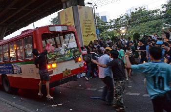 (泰國)泰國反政府示威浪潮急轉直下。反對派11月29日晚宣佈將行動升級後,30日晚率先試圖闖入戒備森嚴的首相府,又襲擊親政府紅衫軍集會所在地附近的巴士和的士,其間有人向示威者開鎗,導致最少1死3傷。反對派號召示威者今日(12月1日)佔領首相府、國會、內政部、外交部和警察總部等重要機關,誓言要政府癱瘓,而紅衫軍也號召民眾前往曼谷聲援。陸軍司令30日表示,軍方會繼續保持中立,軍方並宣佈增派近3000人到曼谷維持治安。