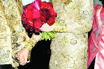 圓圓戴上5卡結婚鑽戒及全身金器非常搶鏡。(圖:香港明報)