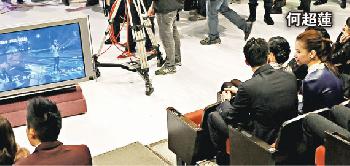 吳克群在台上高歌,何超蓮坐著欣賞,還可看到電視(左)的放大畫面,相信她一定好開心。(圖:香港明報)