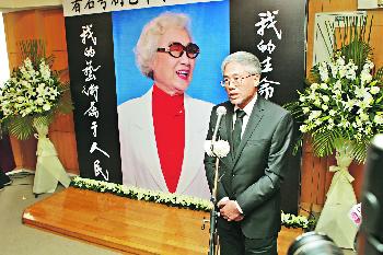 在紅線女藝術中心舉行的紅線女追思會,佈置簡潔莊嚴,台下坐滿了女姐的家人、徒弟與戲迷回顧女姐的傳奇人生。(圖:新華社)