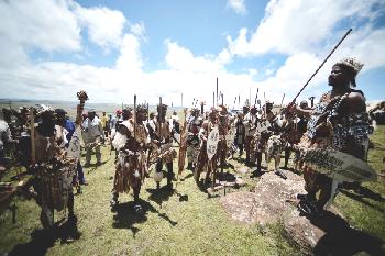 與曼德拉同屬科薩人(Xhosa)的族人15日在庫努墓地附近跳舞,向他致敬。曼德拉所屬的騰布族是科薩族的一個分支。(圖:法新社)