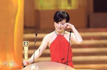 江美儀憑《衝上雲霄II》奪得“最佳女配角”喜極而泣,她表示曾想放棄拍戲。(圖:香港明報)
