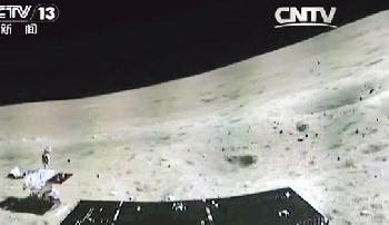 中央電視台報導,整張圖片以360°呈現“嫦娥三號”的落月點地理情況,圖像中可見,此地區地勢相對平坦,附近有少量岩石,遠處可以看到多個撞擊坑,特別是距離著陸器10幾米地方,就有一個較大的撞擊坑。此外,照片亦拍攝到“玉兔號”在月球上行駛的痕跡,包括早前“玉兔號”為與“嫦娥三號”進行互拍轉彎掉頭的痕。