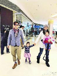 蔡少芬與老公張晉帶著兩個女兒逛商場,四口之家好開心。(微博圖片)