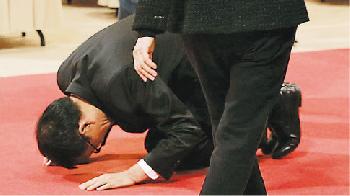劉家昌跪地叩頭向六叔拜祭。(圖:香港明報)