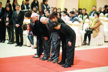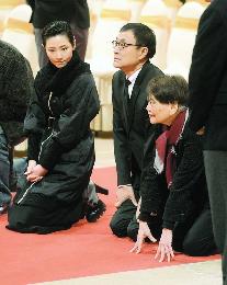 曾效力邵氏,後來傳不和另起爐灶的嘉禾電影創辦人鄒文懷,昨日與太太及女兒一起到追思會以表誠意。另一位嘉禾老闆蔡永昌也有到場,由劉偉強與曾志偉迎接入場。劉德華與鍾楚紅亦差不多時間到場,劉德華本穿上大褸,不過落車時他即變身除去大褸改以灰色西裝步入追思會,拍照時並合十,但未有接受訪問。
