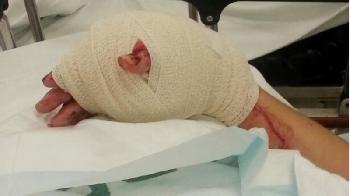 (新加坡)32歲大馬男子歡慶新年後,開工第二天就出事,右手遭卷進割紙機,指骨碎,手掌血肉模糊,緊急送院。