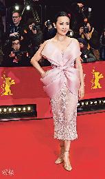 先到倫敦欣賞花生秀,再赴柏林會合梁朝偉,不禁令人懷疑劉嘉玲這身背後風光無限的Ralph & Russo今季粉紅新裝,可會是新鮮出爐的戰利品? (圖:香港明報)