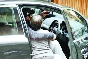 發哥駕車離開時見到記者,亦友善揮手打招呼。(圖:香港明報)