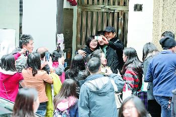 (香港)58歲的周潤發不單型英帥,還出名親民,經常搭巴士、港鐵,只要在街上有市民要求他合照,都有求必應。昨午發哥出巡到中環有懷舊風味的餐廳歎下午茶,離開時被大批市民重重包圍,他來者不拒,在街頭上演“臨時合照會”,非常熱鬧。鬼馬的發哥還戲弄粉絲,又大方摟著女粉絲合照,哄得大家笑呵呵,氣氛歡樂。