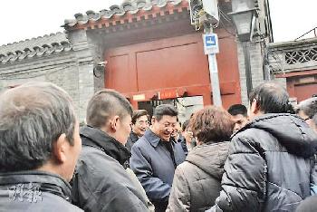 (中國)國家主席習近平昨日在嚴重霧霾天中現身北京南鑼鼓巷西側的雨兒胡同,在北京市委書記郭金龍和市長王安順陪同下,走訪了兩個四合院,問及居民對北京舊城改造的意見。習近平和隨行官員均未有戴口罩,北京輿論稱為與人民“同呼吸,共命運”。據透露,習到訪的民宅3天前開始打掃、清理,寵物狗都要送去其他人家寄養,街上沙井都經過逐個檢查。