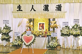 (香港)著名資深演員午馬(原名馮宏源)本月4日凌晨因肺癌在家中病逝,享年71歲,瀟灑走完人生路;昨午於世界殯儀館設靈,遺孀馬艷哀傷在靈堂打點一切,將喪禮辦得風光得體,送別亡夫最後一程。午馬遺體今日出殯後,隨即移奉富山火葬場火化。圈中好友狄龍、洪金寶、羅家英、錢小豪、陳自強等昨日到靈堂拜祭,慨嘆與好友陰陽相隔。