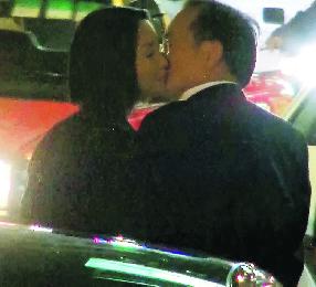 羅慧娟丈夫劉志敏獲女伴深情的goodbye kiss,女方主動親吻,嘴唇貼近劉志敏的嘴,兩人對視一笑。(圖:香港明報)