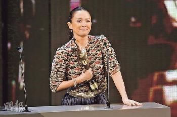 章子怡拿著《一代宗師》為她帶來的第9個獎好激動。(圖:香港明報)