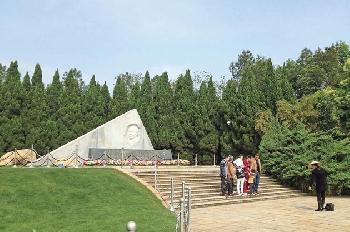 陵園內來客寥寥無幾,一上午僅有30至40人,除一兩批專程來拜祭外,多為遊客。有年輕女遊客擺出各種姿勢拍照;有一家大小到墓碑前雙手合什,祈求這位已故中共總書記保祐他們“身體健康,闔家平安”。講解員走到墓碑前,向遊客介紹這是“風水寶地”。