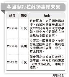 (印度)印度傳媒報導,上週一在北京舉行的第6次中印戰略對話中,中方再次拒絕了印度在西藏首府拉薩重開總領事館的要求,這已經是北京繼2009年及2012年以來,近年最少第3次拒絕印度的這一要求。而印度在拉薩重設領館的立場也有所軟化,開始考慮中方提議的四川成都或雲南昆明作為地點。專家指出,中方態度與60年代中印戰爭以及印度對流亡藏人態度有關。