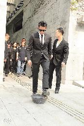 郭富城本在內地拍戲,特請假回港出席喪禮扶靈;他出席完火化儀式後按傳統“檻火盆”,之後再赴英雄宴,十分有心。(圖:香港明報)