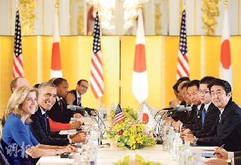 (日本)美國總統奧巴馬昨跟日本首相安倍晉三舉行峰會,雖然奧巴馬昨首次開腔重申《安保條約》適用釣魚島,滿足了日本要求,但與日本就締結“跨太平洋經濟伙伴協定”(TPP)的談判陷僵持,兩國未能如期發表共同聲明,兩國昨繼續談判。