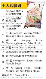 在十大快熟麵排行榜中(詳見網址http://www.theramenrater.com),韓國與新加坡各有3款快熟麵躋身十大,日本則有1款。MyKuali檳城白咖喱快熟麵由去年排第7躍升榜首,同樣來自大馬的媽咪咖喱叻沙快熟麵則排第7。新加坡的百勝廚(Prima Taste)叻沙拉麵和咖喱拉麵排第2和第3,同品牌另一口味辣椒蟹肉拉麵排第8。去年新加坡的快熟麵包攬頭兩位。