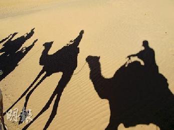 騎著駱駝在沙上的影子,是撒哈拉的“到此一遊”照。(圖:香港明報)