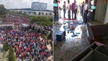 示威者一批又一批地來,他們阻止員工進入工廠工作,打破辦公室的玻璃門窗,一些甚至乘機搶走財物。(馬來西亞星洲日報)