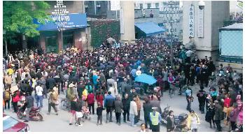 數千民眾圍堵四川岳池縣政府,警方及後強行驅散。(網上圖片)