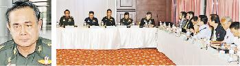 巴育與紅衫軍、素貼及看守政府、參議院與選舉委員代表共40人,昨在重兵看守的曼谷陸軍俱樂部會面。看守首相尼瓦探隆稱事務繁忙未應邀赴會,改派5名閣員作代表。消息透露,會議議題包括如何改革政治系統。