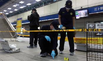 台北捷運(地鐵)江子翠站5月21日下午4時左右發生一男子持刀隨機砍人事件,已知造成至少3人死亡、7人輕傷、15人重傷。圖為台灣警方正做現場勘查。(圖:中國中新社)