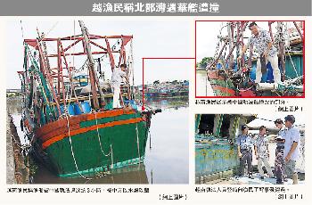 另外,越南媒體報導,一艘越南漁船上週五在位於越南北部與中國海南島之間的北部灣捕魚時,遭到中國執法船舶驅趕,對方向越南漁船開水炮並投擲玻璃樽。報導指出,越南漁船嘗試撤離現場,但被中方船隻持續追趕並衝撞持續3小時,並嘗試把漁船趕至中國水域。報導指,根據漁船上的GPS定位系統,漁船一度被趕到距離中越分界線3公里的中國海域一邊。報導指,漁船損失高達3億越南盾(約11萬港元)。越南英文新聞網站“越南網橋”(VietNamNet Bridge)和《青年報》英文版均有相關報導。