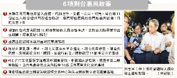 (中國)第6屆海峽論壇在福建省舉行,全國政協主席俞正聲15日致辭時罕有表示,理解台灣朋友對兩岸關係發展有顧慮,尊重台灣同胞對現行社會制度、價值觀念和生活方式的認同,關鍵要“從一家人的角度出發”理解體諒。而國台辦主任張志軍,則借此次大會宣佈了6項惠台措施,為其23日赴台訪問營造氣氛。