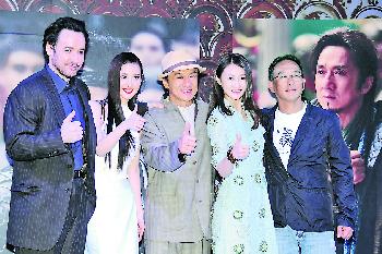 成龍透露早前到橫店拍攝新片《天將雄師》時扭傷腳,之後再去沙漠取景。內地女演員王若心、林鵬亦有出席,王若心大露背亮相,她在戲中飾演成龍的太太。(香港明報)