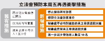 另外,據知警方對本週五立法會的示威嚴陣以待,除了繼續由行動處長黃志雄督師,會再增添人手支援,意味較上週五的逾千警力更多;機動部隊、衝鋒隊亦有調動,早更人手將轉至下午當值,應付下午舉行的立法會財委會會議。