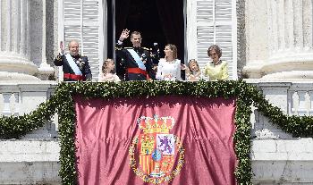 在位39年的國王卡洛斯週三晚在宮中含淚簽署法案正式退位,其子費利佩週四凌晨正式成為國王,是西班牙70年代民主化以來首次王位交接。費利佩昨到國會宣誓就任國王,宣誓維護憲法。議長隨即宣佈他成國王:“西班牙萬歲!國王萬歲!”費利佩隨即向國會發表演說,表示對西班牙的團結滿懷信心,強調建立一個“團結多元的西班牙”。