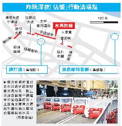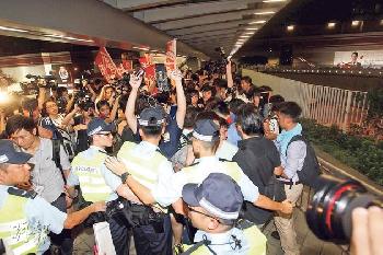 在警方發出警告及警力部署下,學民思潮帶領約300人,昨晚約11時由中環遊行到金鐘特首辦,其間一度與警方僵持。留守中環的人士坐滿整條遮打道,約800名“熱血公民”及部份戴面具市民,亦於匯豐總行對開集結。