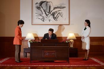 此外,習近平今日將出席中韓商務論壇,其後參觀在酒店臨時設置的三星和LG展館。兩公司將展示尖端產品,三星電子副總裁李在鎔會介紹曲面超高清(UHD)電視、平板電腦Galaxy Tab S、智能手機Galaxy S5等;LG總裁具本茂則將介紹曲面有機發光二極管(OLED)電視、電動汽車電池等將在中國市場推出的產品。