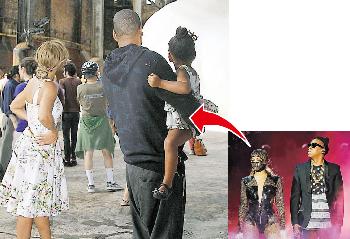 有傳Beyonce為了闢謠,前日透過官方網站上載一家三口把臂同遊紐約展覽館的照片,相中Jay-Z抱著愛女Blue Ivy(右)欣賞藝術家Kara Walker以白糖製成的35呎高女性半身雕像,雖然三人都背著鏡頭,但感覺卻似氣氛融洽,以實際行動打破婚變傳聞。(香港明報)
