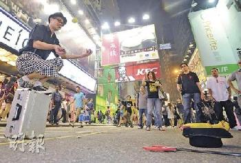 (香港)香港政府近日為推動街頭表演藝術,在尖沙嘴、沙田和葵青指定地方推行“開放舞台”試驗計劃。然而計劃的規限多多,不但限制表演者不能收打賞,更列明表演者不能多於8人,只能在3米乘5米場地表演,且要經過試演的人才能表演,表演者更要有香港永久居民身份證或可在港合法受僱的旅遊證件。