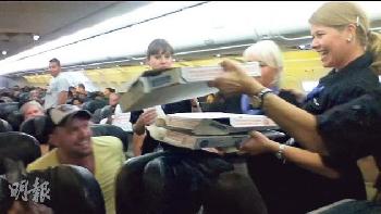 (美國)美國一架廉航客機因為天氣惡劣被迫滯留機場,在等待重新啟航期間,機師為免全機百多名搭客捱餓,自掏腰包訂了35個薄餅給乘客醫肚。薄餅外賣速遞送上飛機,這可能是第一次。
