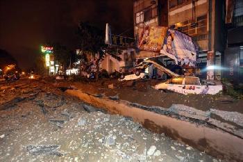 (台灣)高雄市凱旋路和三多路今天凌晨發生氣爆,災區綿延1公里長,有電單車騎士當場被炸飛,居民形容像被原子彈炸過。