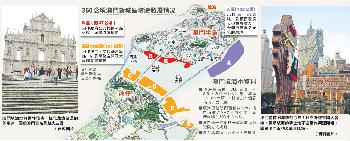 澳門政府獲批填海的350公頃分為5區域,在澳門半島東面的A區,將開發成小城區,當中會預留用地發展大型會展業及配合澳門產業多元化的項目。B區為新口岸孫逸仙大馬路以南區域,作為政府公共機構及擴展道路和綠化區,並會興建海濱長廊。氹仔以北則劃為C、D、E區,開發為住宅、交通基建設施,以及綠化空間及文康體育設施等(圖:明報新聞網)。