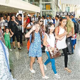鍾鎮濤與范姜女兒鍾懿(左一)有梁家輝女兒(右一)照顧,妹妹鍾幗尾隨在後。(圖:香港明報)