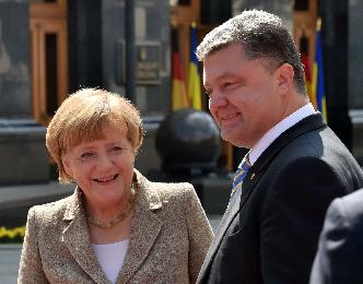默克爾昨日抵達基輔,在3日行程裡與總統波羅申科等烏克蘭領袖會晤。她提到俄國車隊擅自進入烏克蘭,稱這令“危險升級”。烏克蘭外交官稱,默克爾此行的兩大目的,是對跟莫斯科僵持的基輔給予支持,同時促請波羅申科本週二與俄國總統普汀會面時,對和談持開放態度。