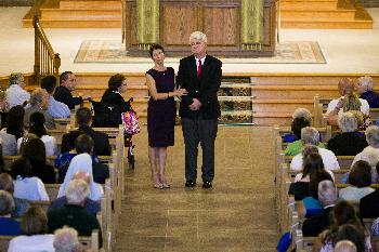 遭斬首記者福利的家人週日為其舉行追思彌撒,福利的父母站立發言。福利父母公開一封福利口述並由曾一同被綁架的丹麥記者記錄的家書,福利在信中表達對每名家人的感情,稱憶述與兄弟姊妹的生活點滴為他帶來希望。(圖:法新社)