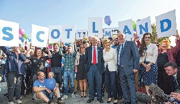 蘇格蘭獨統兩派支持度近月愈拉愈近,至週日《週日泰晤士報》委託YouGov所做民調更首見支持獨立多於反對者的情。面對國家分裂的危急情,朝野三大領袖——保守黨籍首相卡梅倫、自民黨籍副首相克萊格和工黨黨魁文立彬昨兵分三路往蘇格蘭箍票。